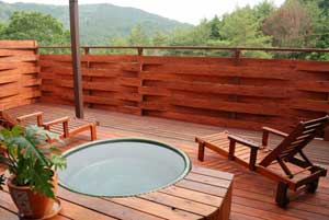 予約制の屋外風呂は1組45分ずつお時間をお取りしますが、ご相談頂ければ、 ※ 各風呂に「ボディソープ・シャンプー・コンディショナー・メイク落とし洗顔」 ございます。 |
