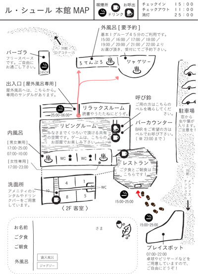 チェックイン 15:00-20:00 ● チェックアウト 11:00 |