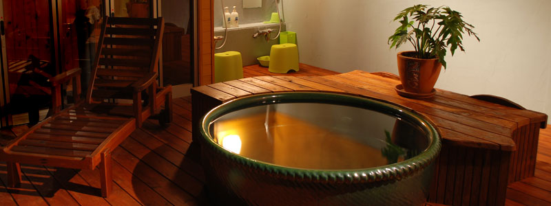 ◆2〜3名向き ◆信楽焼の浴槽 [ ご利用時間 ] 夜 17:00 〜 25:00 朝 7:00 〜 10:00 |